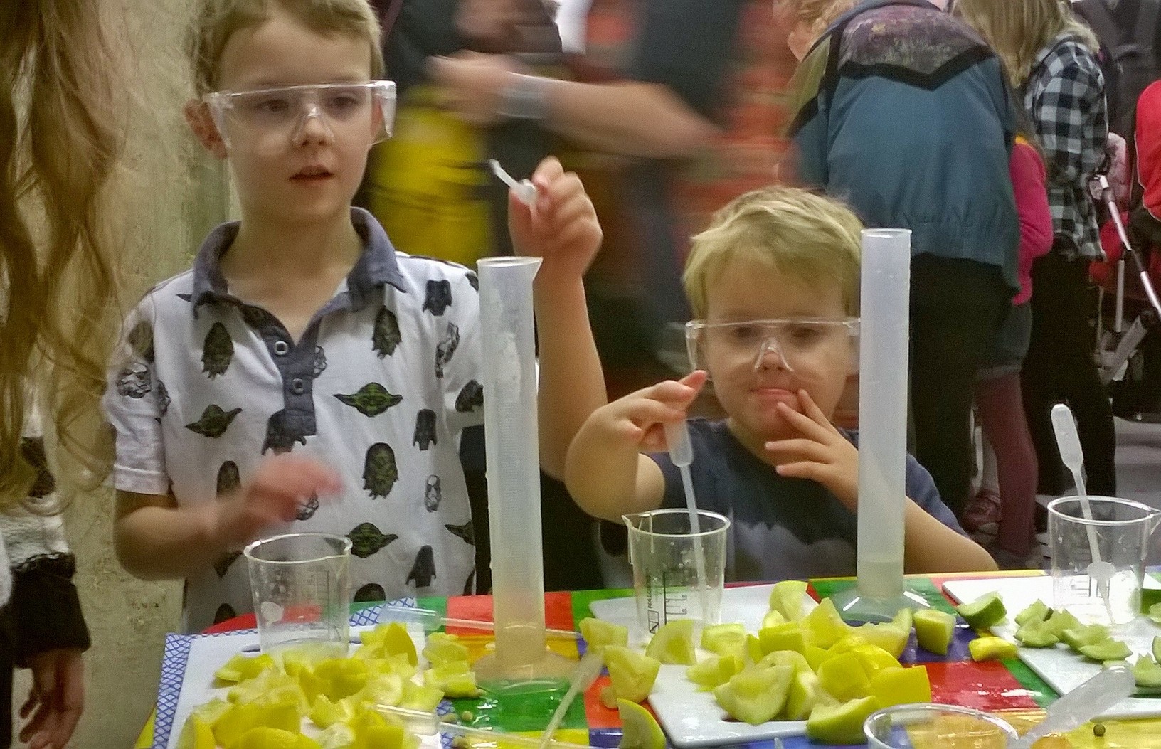 The picture shows two young scientists finding out how much Vitamin C is in different fruits. They now know the best way of keeping colds at bay. And they enjoyed themselves so much they asked if they could come back again the following day! Sorry, boys, we were there for just the one day this year.