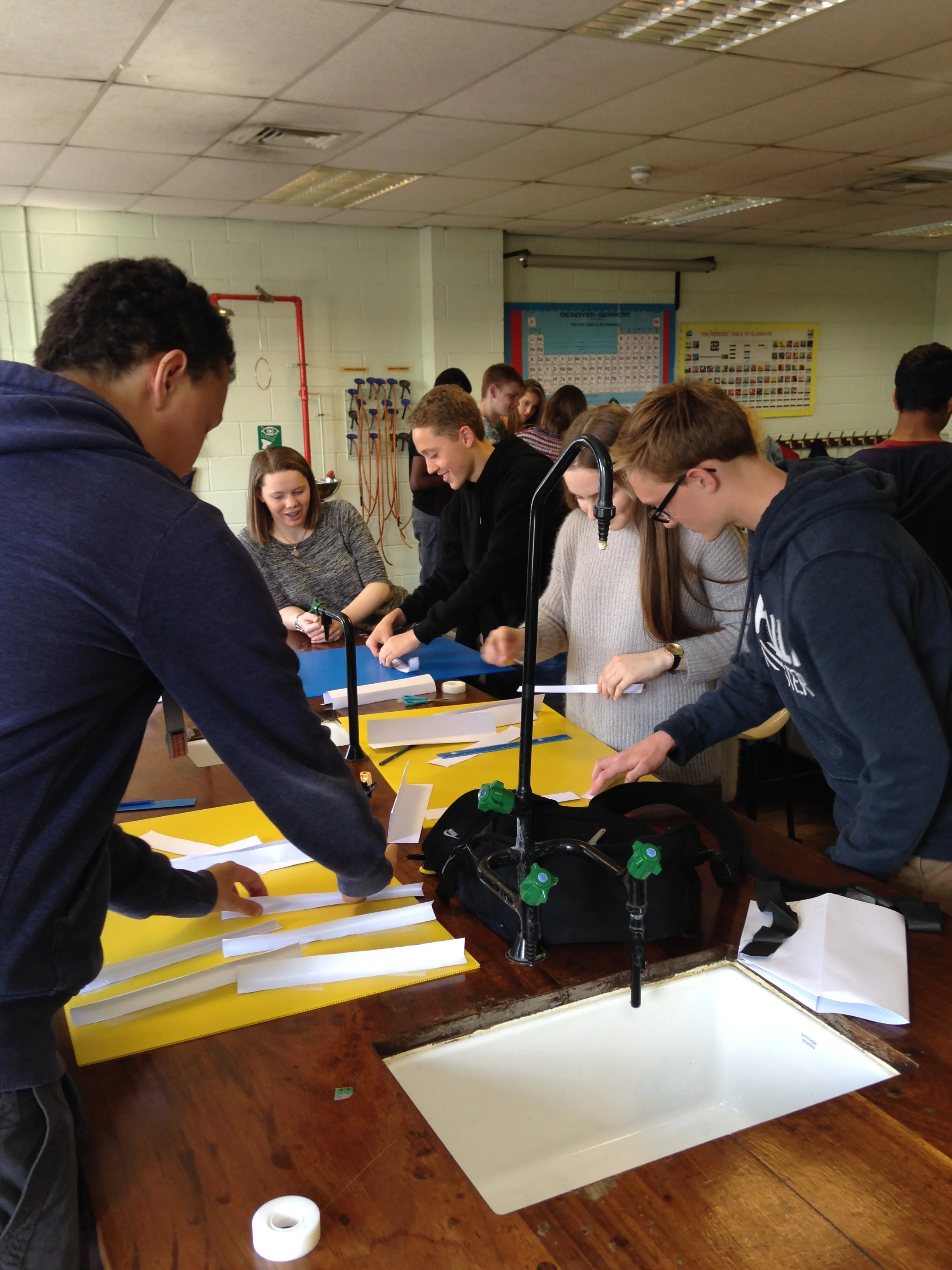 A group of Y10 students from the Wakefield Grammar School Foundation spent a happy three days last week doing SPLATS. After one day of training to learn some of our workshops (see photograph), they then spent two days running science activities for about 250 Y5 primary pupils.