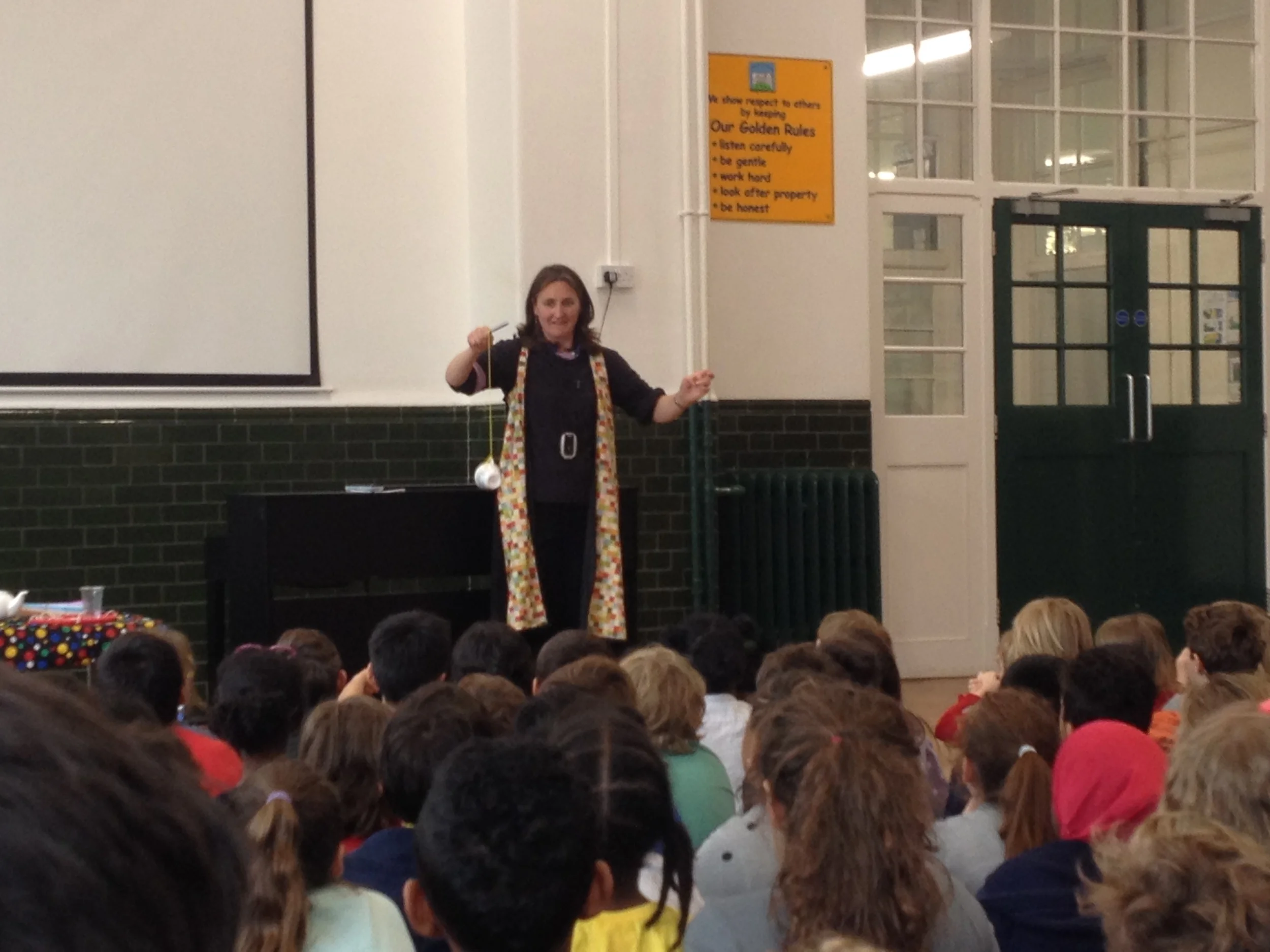 Sarah visited a London school this week to deliver our popular 'Street Science' show as a year assembly. A variety of 'tricks' enabled her to engage the children in discussing how the tricks worked and the science behind them.